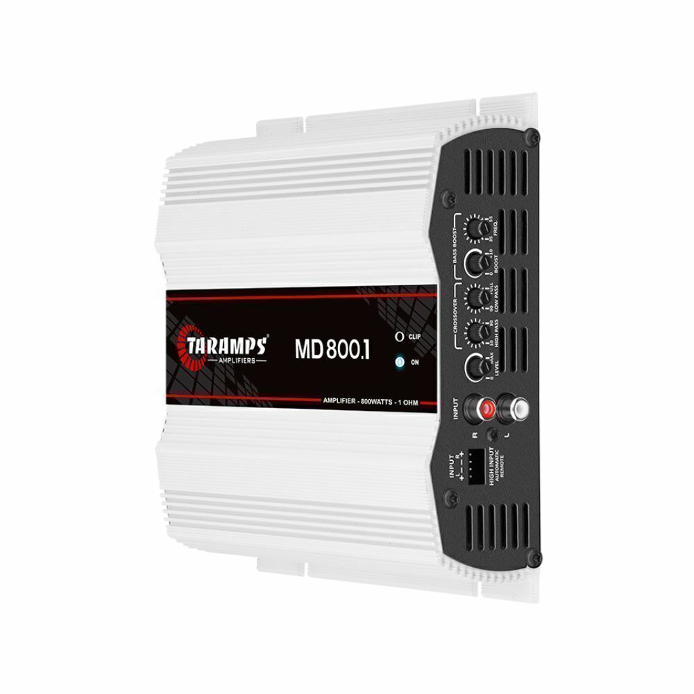 A Taramps apresenta o módulo amplificador MD 800.1 na versão de 1 ohm. Foi cuidadosamente desenvolvido com a mais alta tecnologia, oferecendo alto rendimento e desempenho para os mais variados sistemas de som automotivo, atendendo toda a gama de frequência, em outras palavras, é um módulo FULL RANGE. É um amplificador classificado como mono, tem um canal com potência máxima de 800 Watts RMS. Bem-vindo ao mundo sonoro da Taramps.